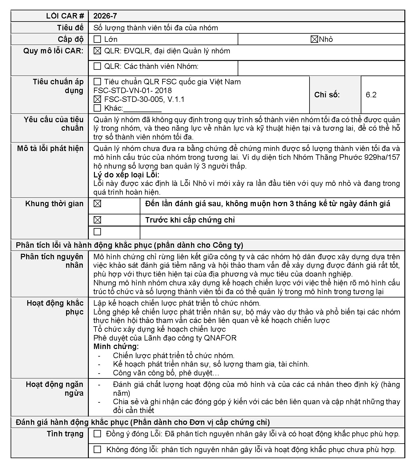 Trong khuôn khổ Dự án Quản lý rừng bền vững và cấp Chứng chỉ rừng FSC®, trong tháng 3 năm 2026, Công ty Cổ phần Đầu tư và Phát triển Lâm nghiệp Quảng Nam đã tiến hành đánh giá nội bộ đối với các lô rừng tham gia Dự án.Kết quả đánh giá nội bộ như sau: